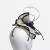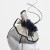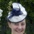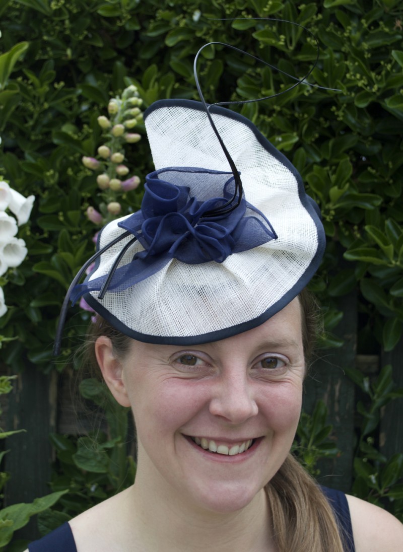 Cream and dark navy ruffled sinamay head piece with curled quills