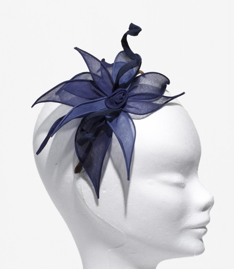 Navy and blue small pointy flower and navy coil head band