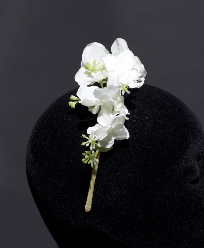 White small flowers and green leaves bound on a head band