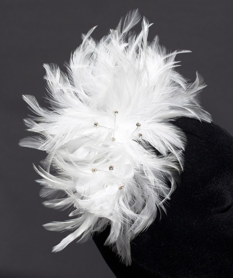 White wired feather head band with crystal stamens